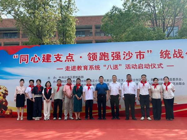 启动仪式上,盛志宏对活动情况进行详细介绍,深入阐述“八送”服务如何精准对接教育实际需求;宋光辉发表致辞,向支持教育事业的社会各界表达诚挚感谢,并表明推动沙市教育高质量发展的坚定决心。“同心志愿者”旗帜授旗仪式庄严进行,鲁娟将旗帜授予农工党沙市区基层委员会副主委廖培悦,标志着公益志愿服务力量正式集结。协办单位代表许欣发出公益倡议,呼吁更多力量投身教育帮扶工作。随后,余松柏宣布活动正式启动。 活动中,民进沙市区总支积极践行“八送”服务理念,以实际行动彰显责任担当。