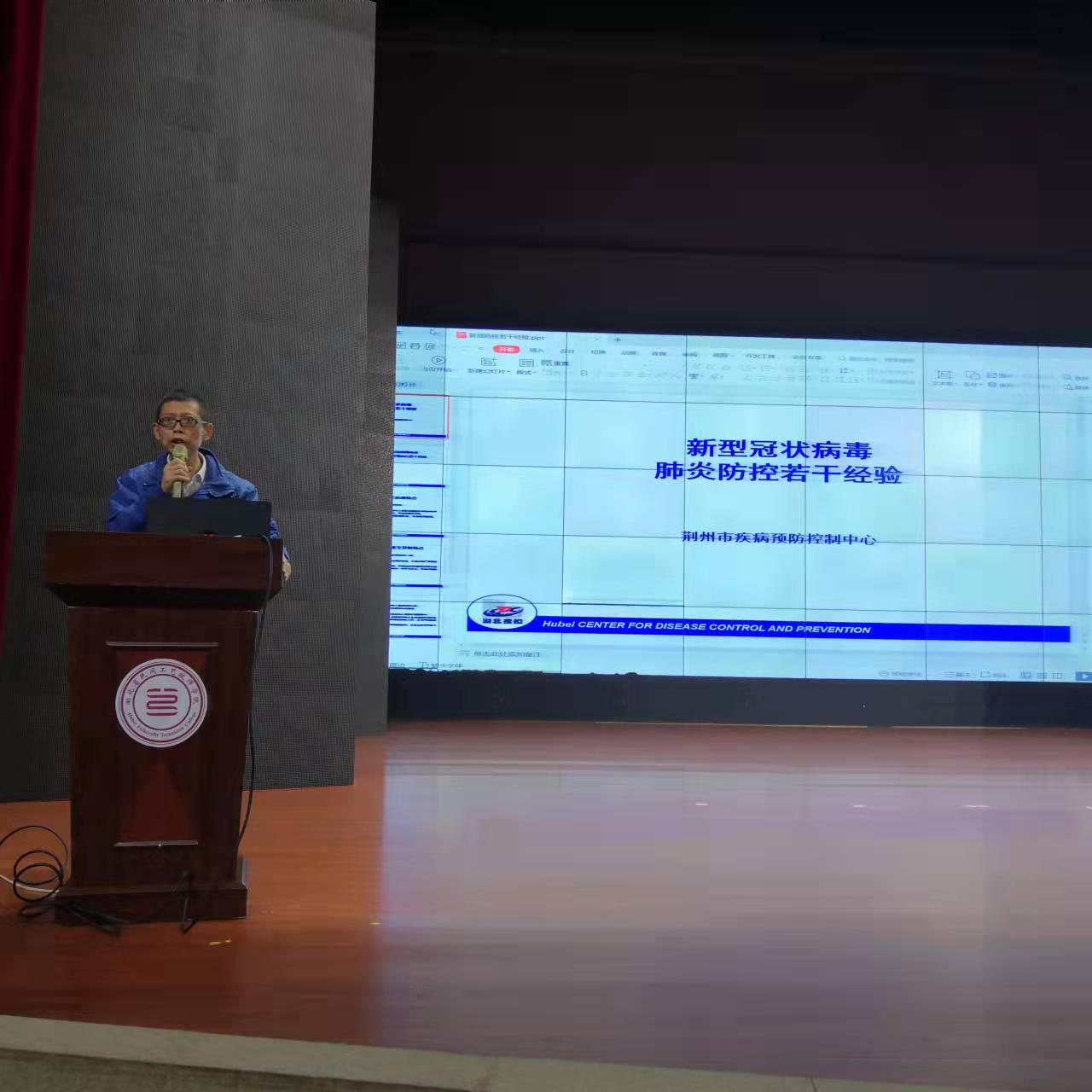会员杨亚涛,荆州市疾病预防控制中心副主任医师,从事疾控工作近三十年,为学生们主讲新冠疫情防控。他首先介绍了传染病的基本概念、传染病流行的三个环节(传染源、传播途径、易感人群)、控制传染病的三大措施(控制传染源、切断传播途径、保护易感人群)。随后重点讲解了新冠病毒生物学特点、新冠疫情在我国和全球流行的特征、我国体制在新冠疫情防控中显示的巨大优越性及我国对新冠疫情零容忍的防疫政策。最后指出戴口罩、勤洗手、少聚集、打疫苗仍是切断传播途径、保护易感人群的最好方式,与高风险人群、高风险区域有过时空交集后主动自我隔离并向社区报备、出现症状后主动到医院就诊避免病毒进一步扩散是我们每个公民应尽的社会责任。