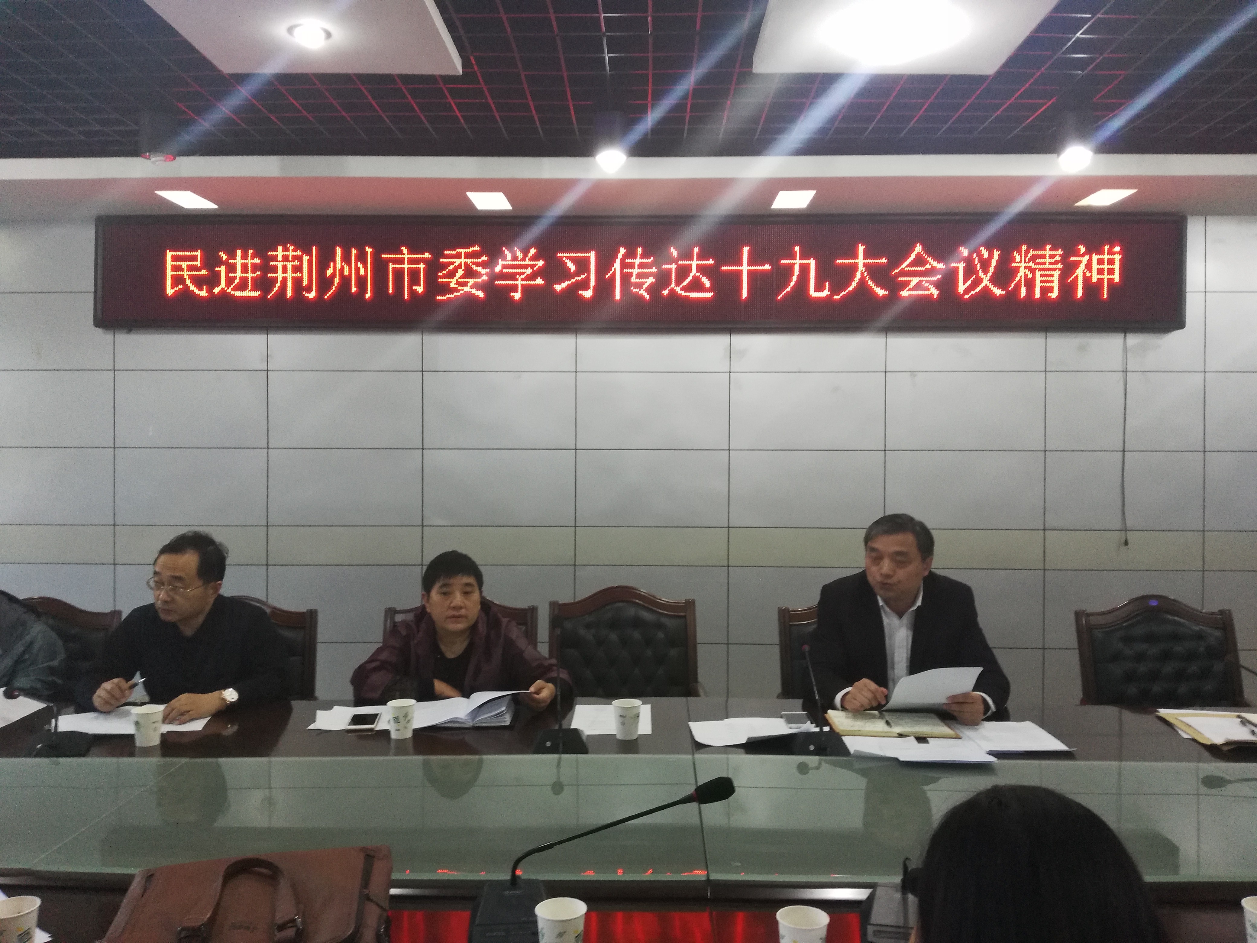 2017年11月5日下午,民进荆州市委召开五届六次市委(扩大)会议。主委许晓宏,副主委徐国青、黄平,市委委员朱玉富、曾晖、梁景、鲍文彬、易良华、丁功顺、白卉、许小兰,专委会主任,各总支负责人共三十多人参加会议。