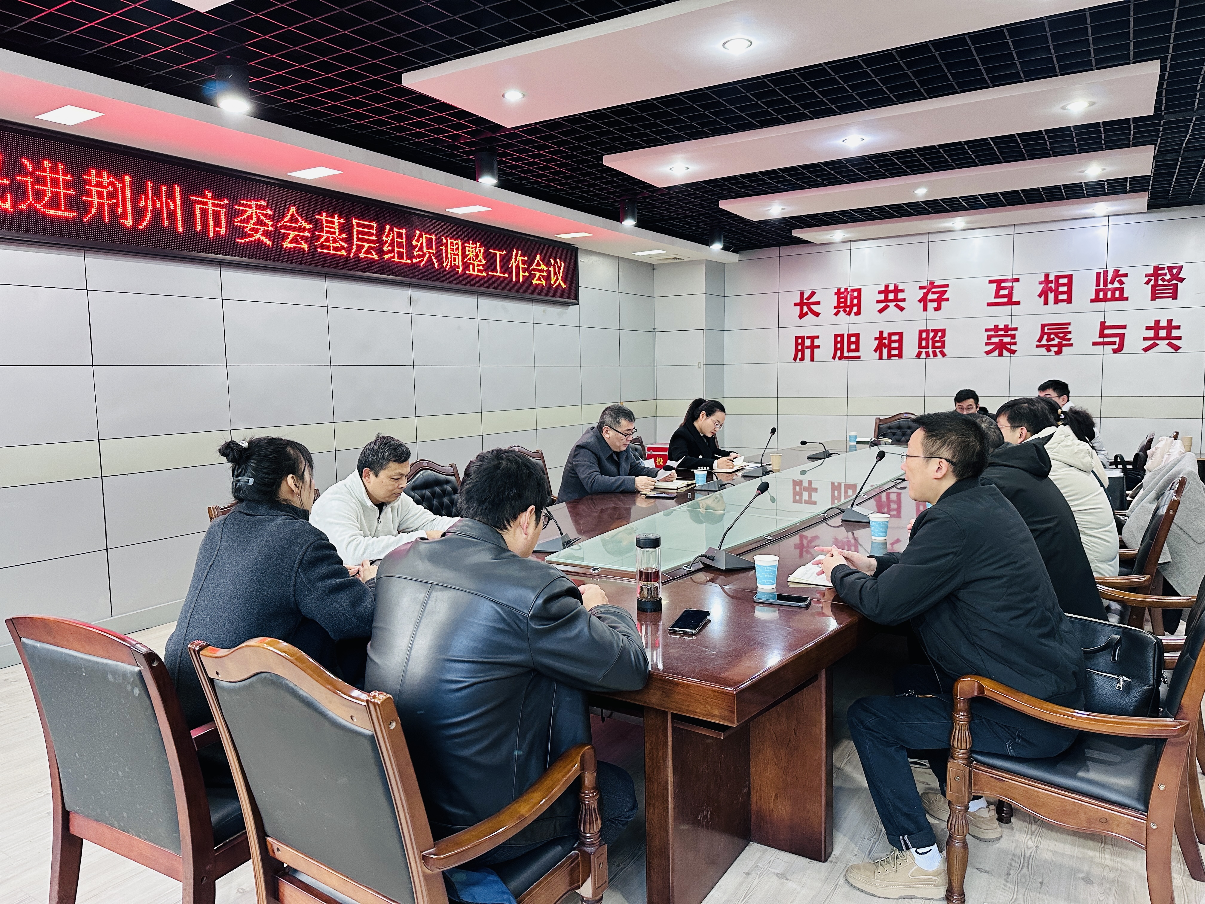 12月2日上午,民进荆州市委会在党派机关会议室召开基层组织调整会议,民进荆州市委专职副主委黄平,民进荆州市委副主委、沙市区总支主委白卉,民进沙市区总支、沙市中学总支委员及会员代表参加会议,会议由白卉主持。