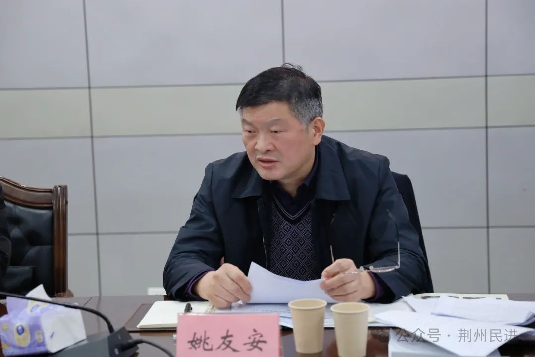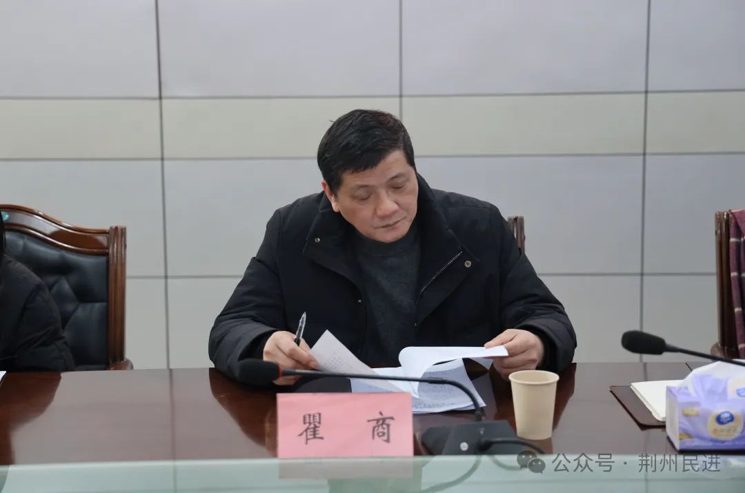 1月26日下午,民进荆州市委会召开2023年度领导班子“凝心铸魂强根基、团结奋进新征程”主题教育民主生活会。民进湖北省委会内部监督委员会委员、民进中南财经政法大学委员会主任、中南财经政法大学经济学院经济史研究中心主任瞿商,民进湖北省委会组织部三级主任科员张少文,中共荆州市委统战部常务副部长姚友安,中共荆州市委统战部党派科科长谢玲,荆州市纪委监委派驻市委统战部纪检监察组干部许飞到会指导。会议由荆州市政协副主席、民进荆州市委会主委、长江大学校长助理许晓宏主持,副主委黄平、徐国青、白卉参加会议,市委会内部监督委员会副主任贺勇以及市委会办公室人员列席会议。