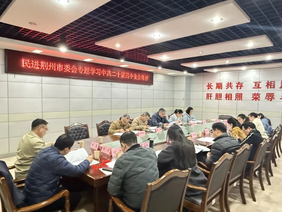 11月21日晚上,民进荆州市委会召开专题学习中共二十届四中全会精神会议。市政协副主席、民进市委会主委许晓宏主持会议,民进市委会副主委徐国青、黄平、白卉,市委委员,各总支负责人,内设机构和专委会负责人等参加会议。