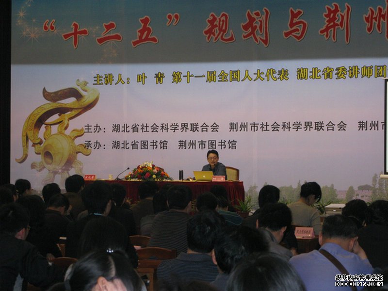 (通讯员 钟桦) 4 月 20 日 , 荆楚讲坛市州行暨荆州市全民阅读活动大型报告会在荆州市委礼堂举行。近五百名机关干部 、 党校学员到会聆听第十一届全国人大代表、湖北省统计局副局长、民进湖北省委副主委 叶青教授题为 “ 十二五 ” 规划与荆州发展的主题报告。