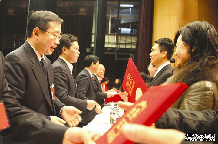 民进荆州市委副主委宋兆菊接过市委书记李新华颁发的 优秀提案奖